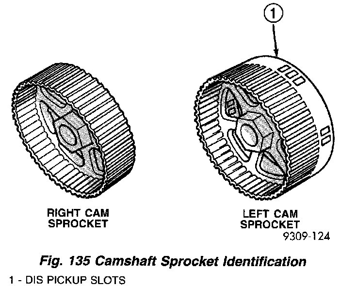 CAUTION: The camshaft sprockets are not interchangeable from side to side (Fig. 135).