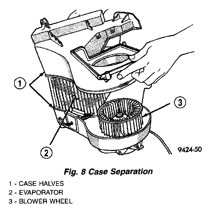 1. Remove the clips and screws that hold the Unit Housing to the Evaporator/Blower Module. Then separate the two units.