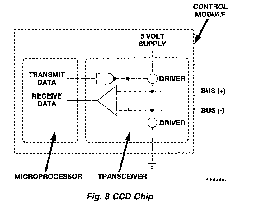 In order for an electronic control module to communicate on the CCD data bus, it must have a CCD chip. The CCD chip contains a differential transmitter/receiver (or transceiver), which is used to send and receive messages. Each module is wired in parallel to the data bus through its CCD chip.