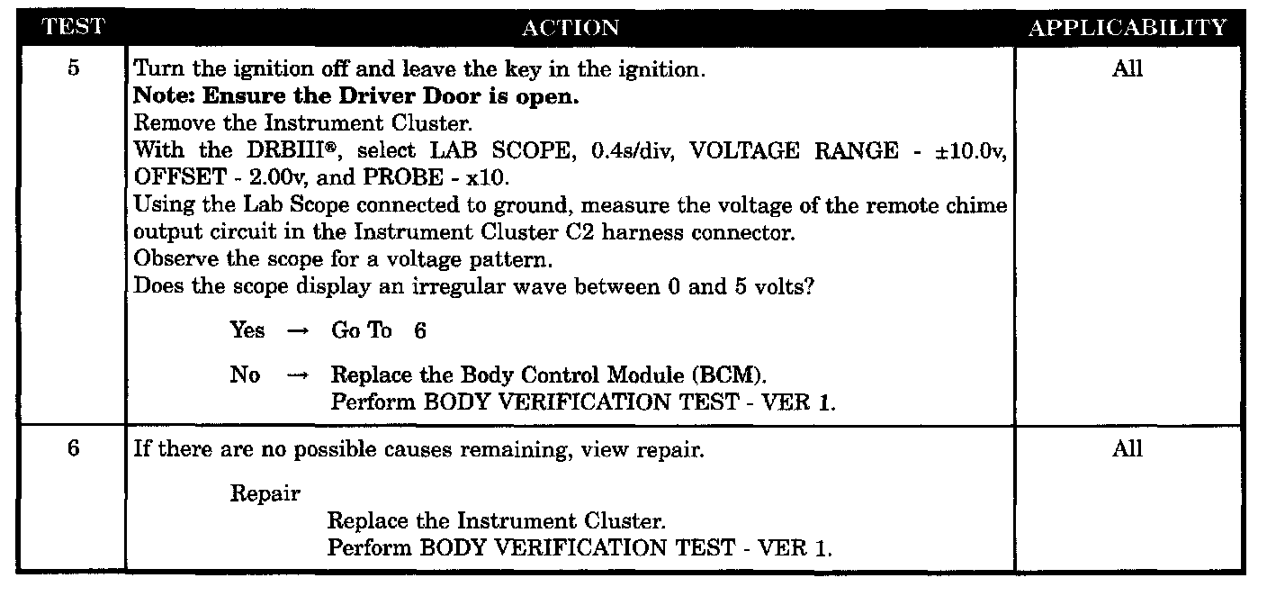 CHIME INOPERATIVE AT ALL TIMES