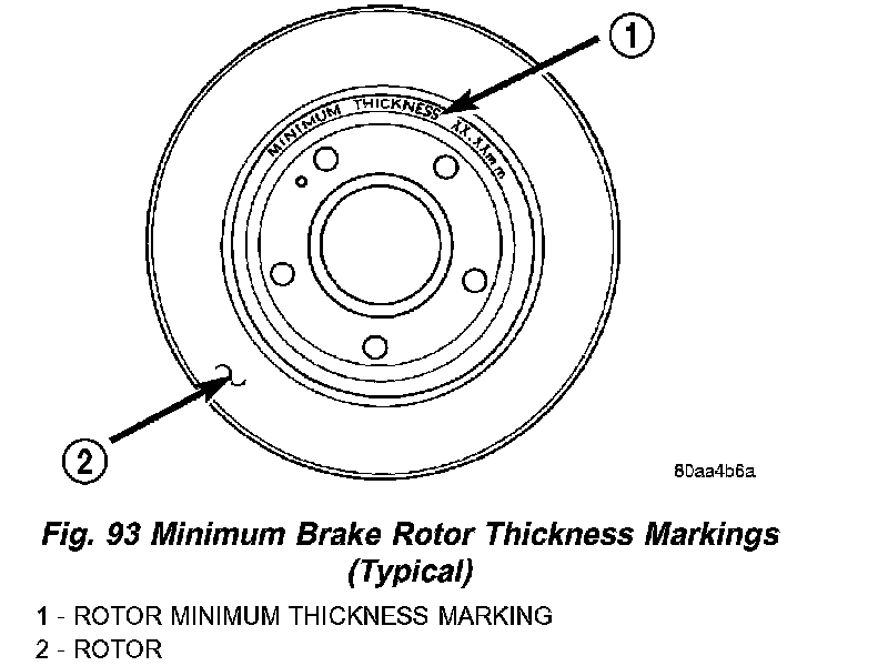 Minimum thickness specifications are cast on the rotor's unmachined surface. Limits can also be found in specification.