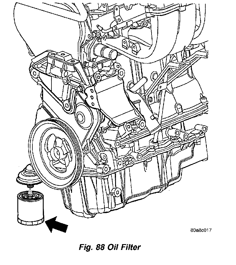 3. Using a suitable filter wrench, turn oil filter (Fig. 88) counterclockwise to remove.