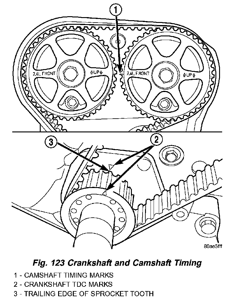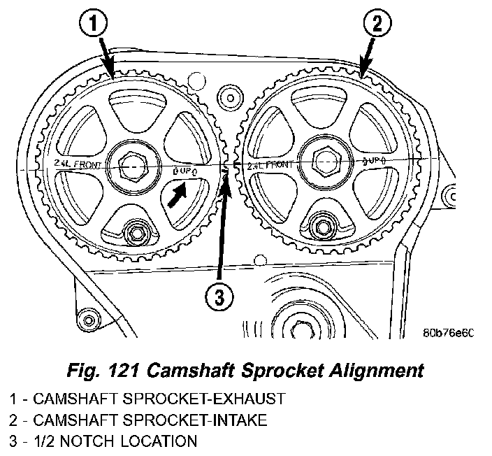 CAUTION: Incorrect removal or installation of the timing belt can result in damage to internal engine components.Fig.121: