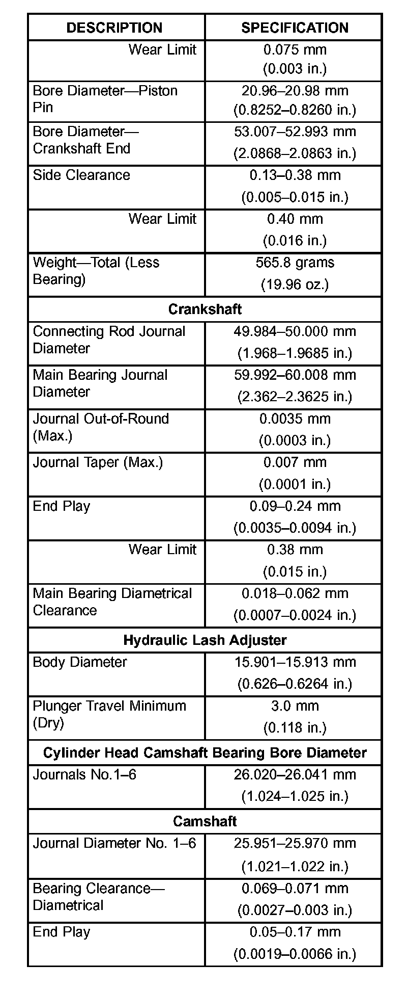 Engine Specifications