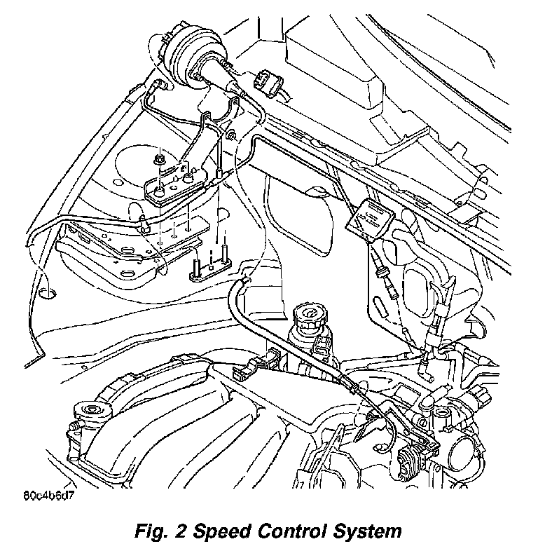 The speed control system is electronically controlled and vacuum operated. The electronic control is integrated into the Powertrain Control Module, located on the left side of the engine compartment next to the air cleaner. The controls are located on the steering wheel and consist of a single switch. The ON, OFF, RESUME, ACCEL, SET, COAST, and CAA/CEL, lever is located on the right of the steering wheel. For identification and location of the major components.