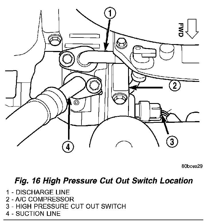 A/C HIGH PRESSURE SWITCHWARNING: THE REFRIGERANT MUST BE REMOVED FROM THE SYSTEM BEFORE REMOVING THE HIGH PRESSURE CUT OUT SWITCH.