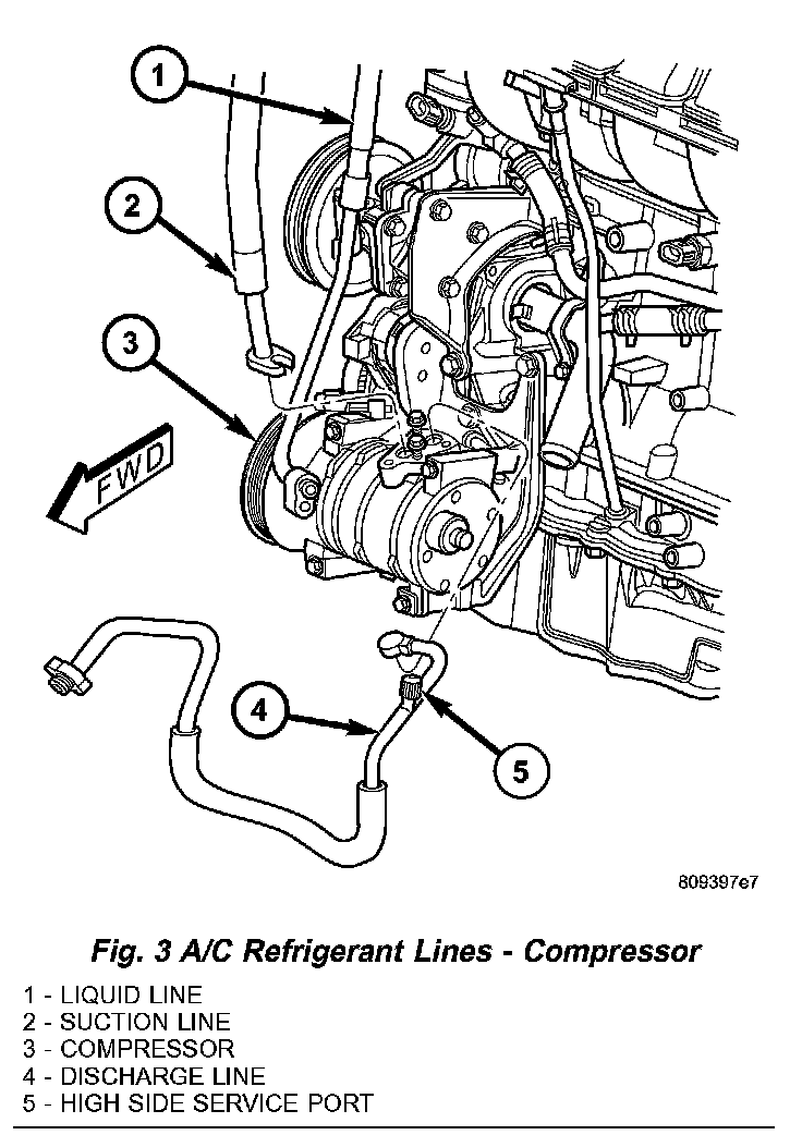Fig. 3 A/C Refrigerant Lines - Compressor: