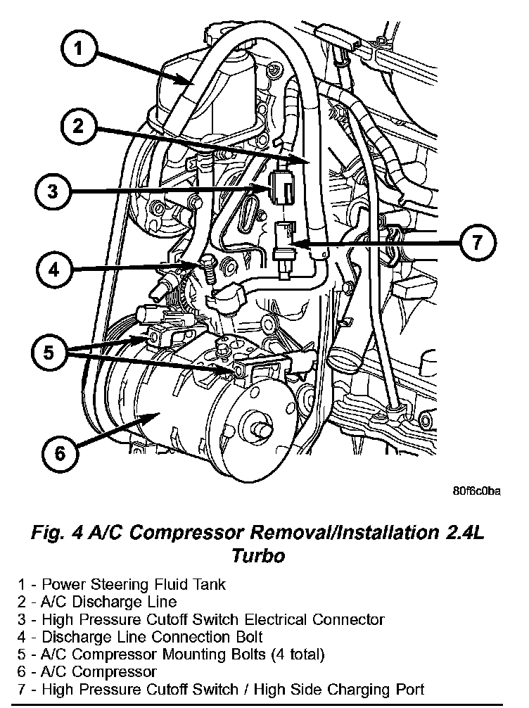 Fig. 4 A/C Compressor Removal/Installation - 2.4L Turbo: