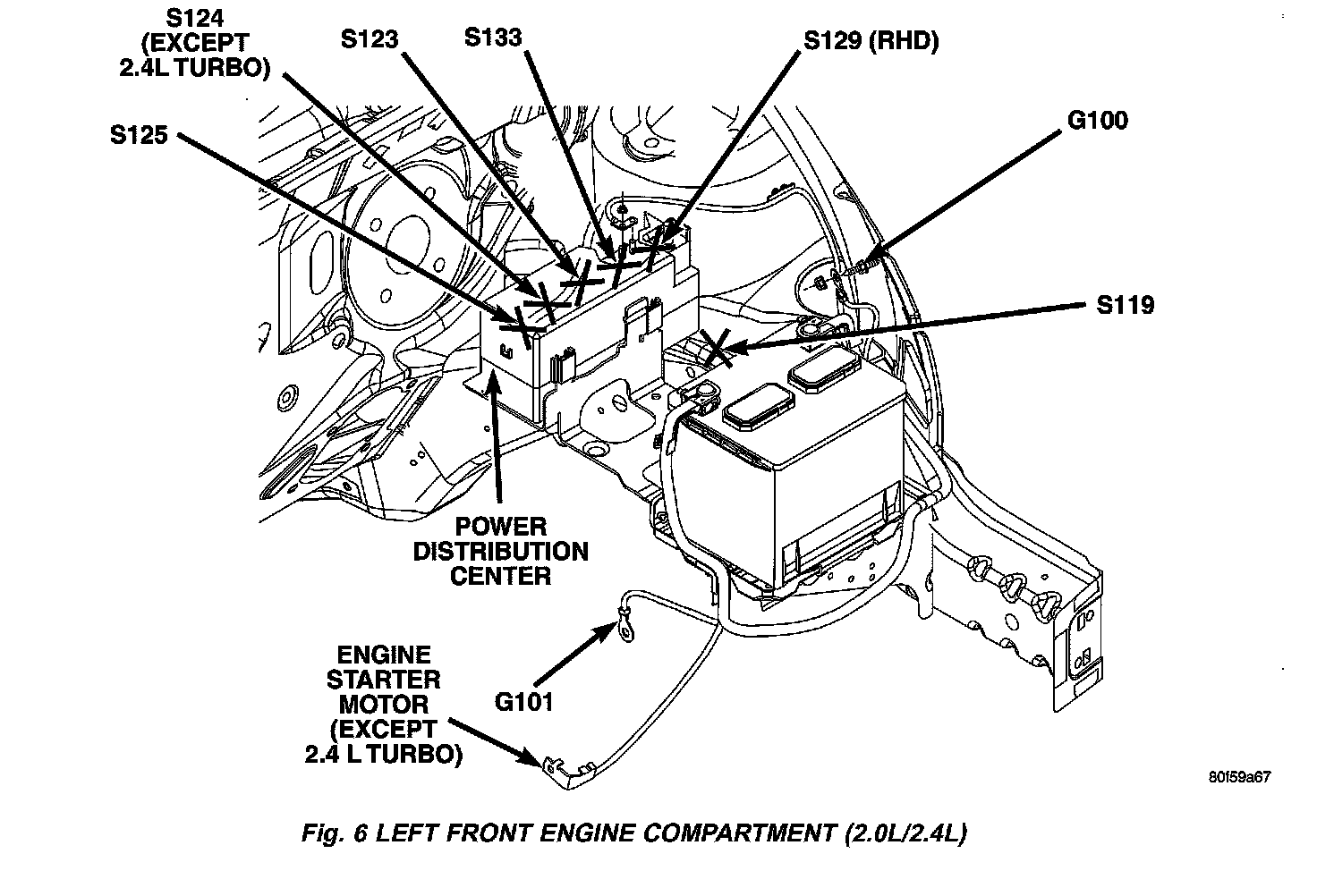 Fig. 6 Left Front Engine Compartment (2.0L/2.4L):