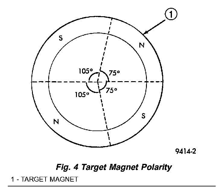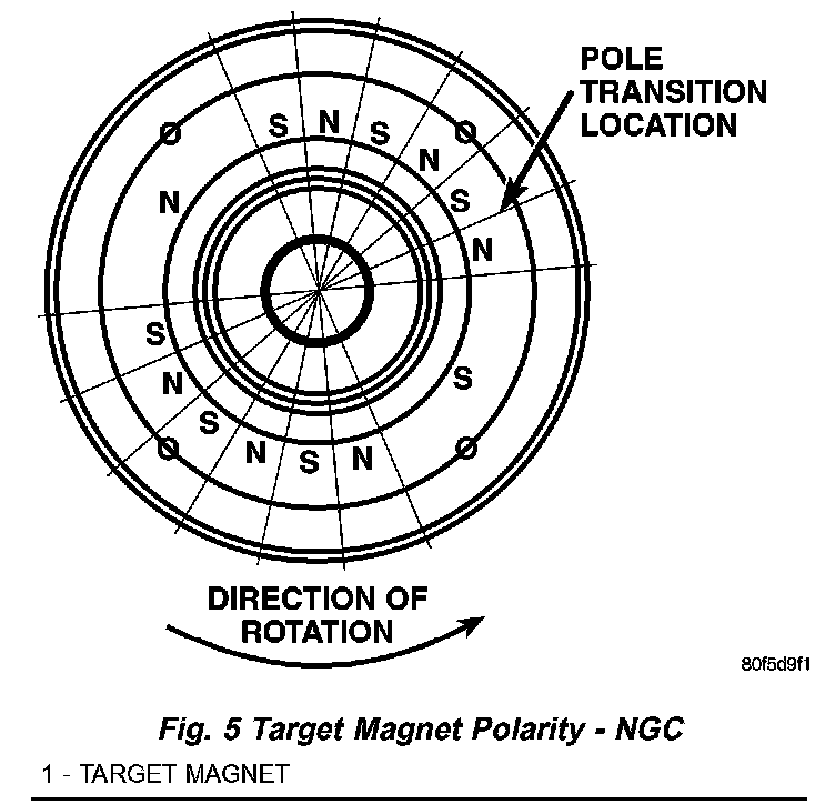On 2.0/2.4L engines a target magnet attaches to the rear of the camshaft and indexes to the correct position. The target magnet has fourteen different poles arranged in an asymmetrical pattern. As the target magnet rotates, the camshaft position sensor senses the change in polarity.