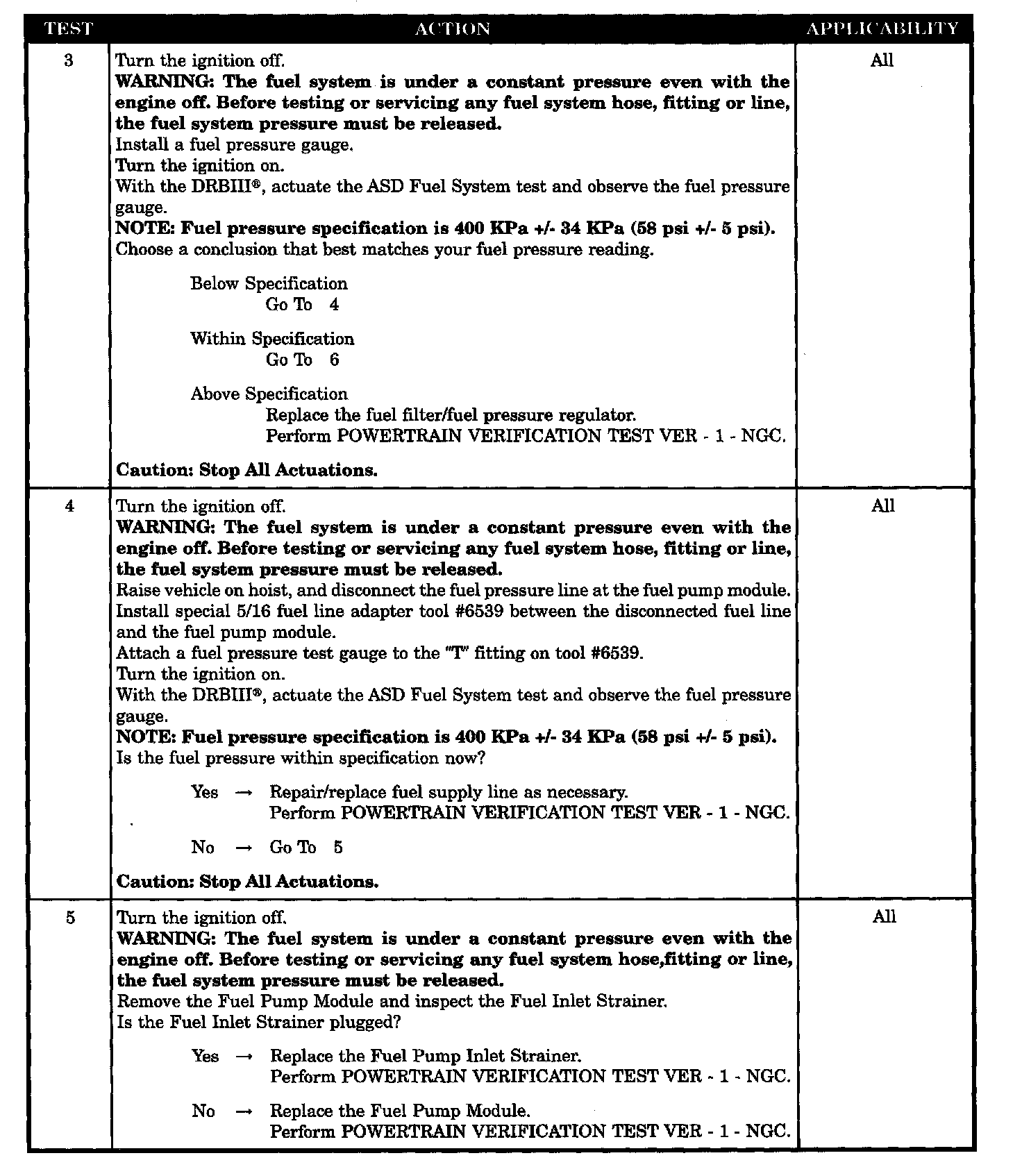 - Fuel pressure out of specs