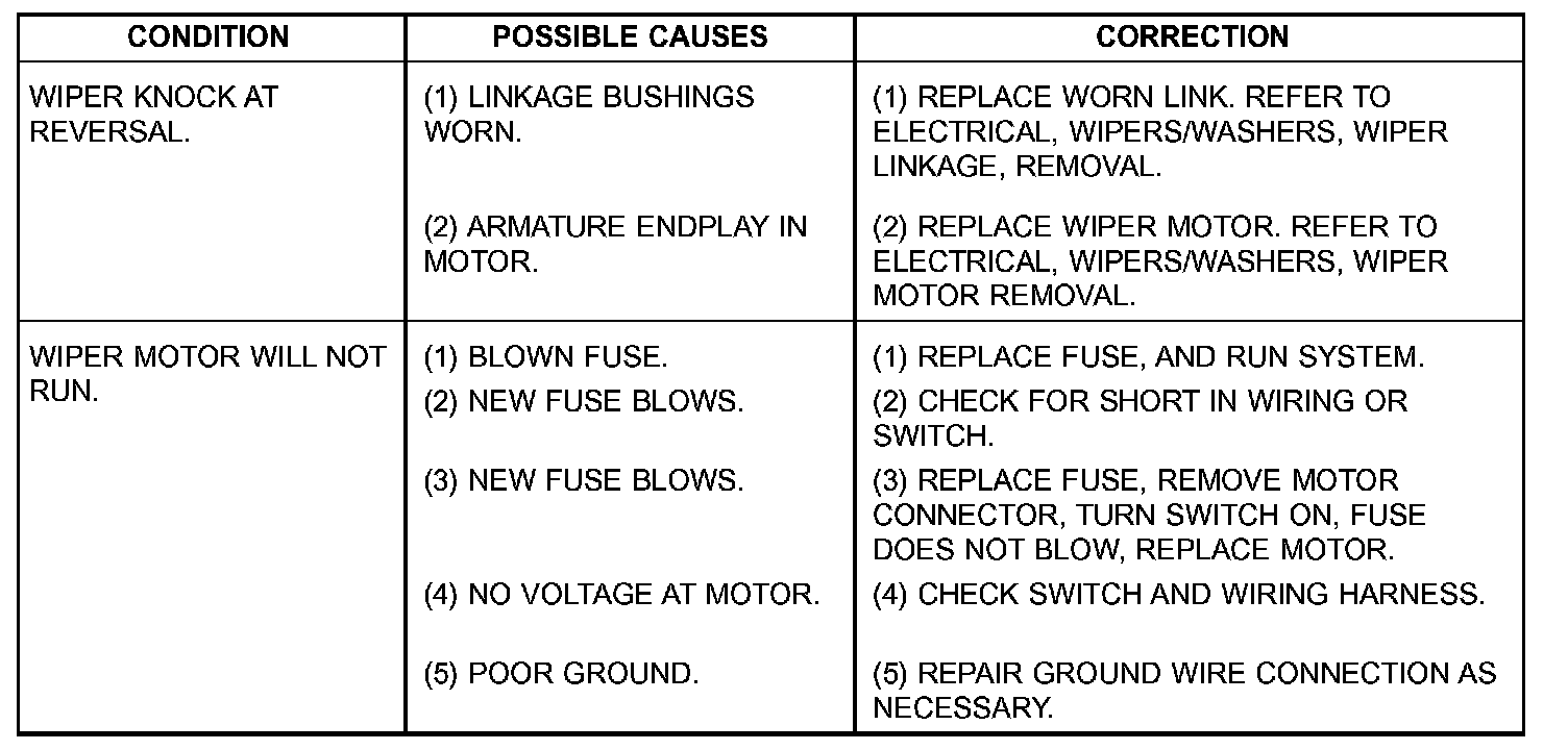 Wiper Motor: Testing and Inspection