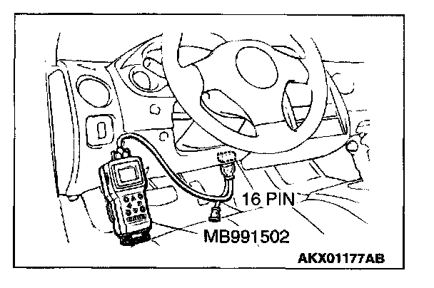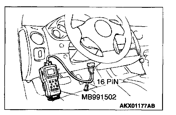To prevent damage to scan tool MB991502, always turn the ignition switch to the "LOCK" (OFF) position before connecting or disconnecting scan tool MB991502.