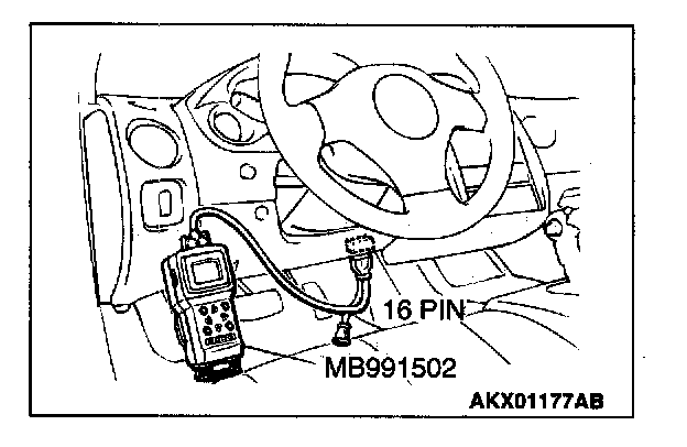 1. Connect scan tool MB991502 to the data link connector.