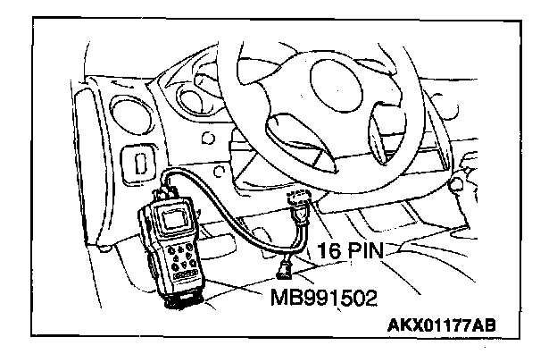 To prevent damage to scan tool MB991502 always turn the ignition switch to the "LOCK" (OFF) position before connecting or disconnecting scan tool MB991502.