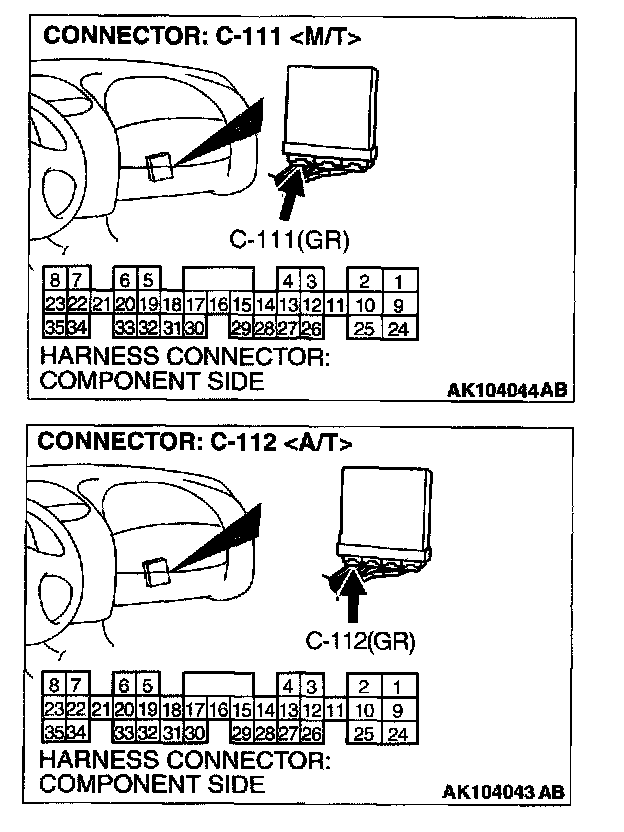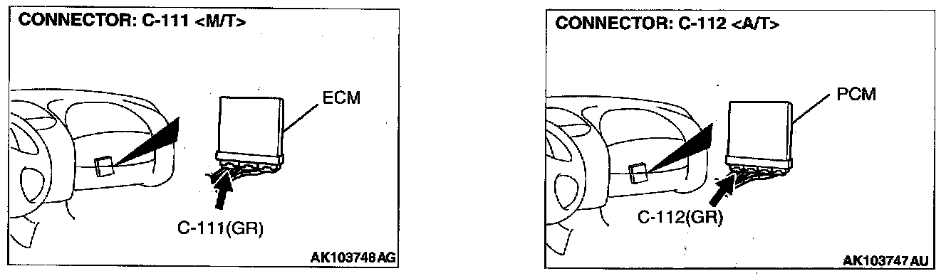 STEP 4. Check connector C-111 at ECM or connector C-112 at PCM for damage.
