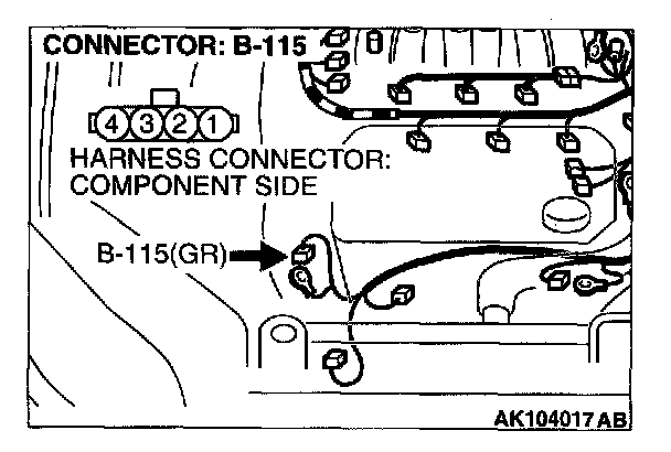 STEP 3. Check connector B-115 at generator connector for damage.