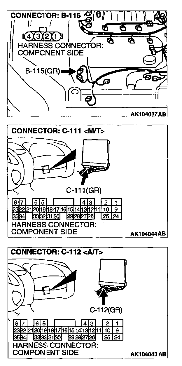 STEP 5. Check for open circuit and short circuit to ground and harness damage between generator connector B-115 (terminal No.1) and ECM connector C-111 (terminal No.8) or PCM connector C-112 (terminal No.8)