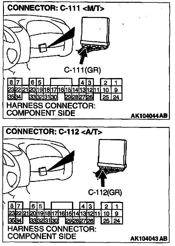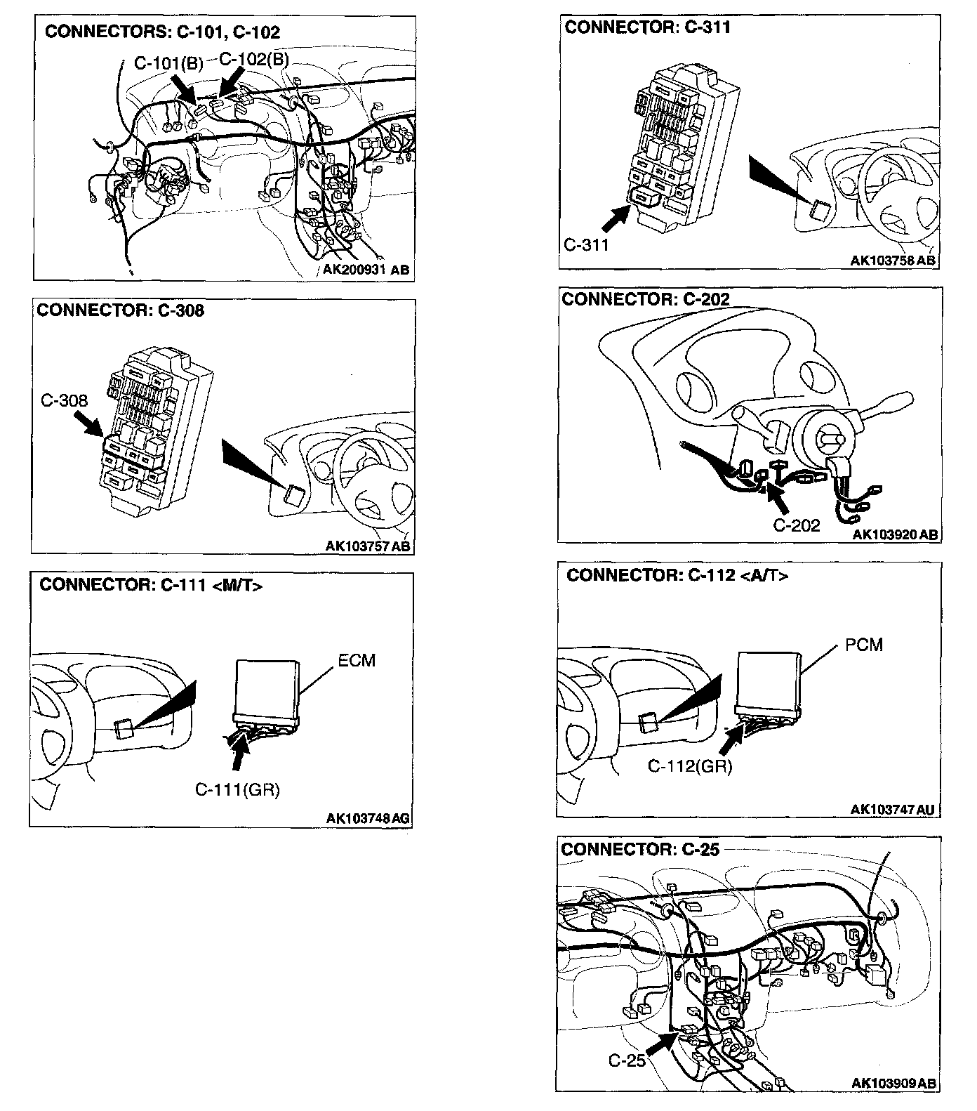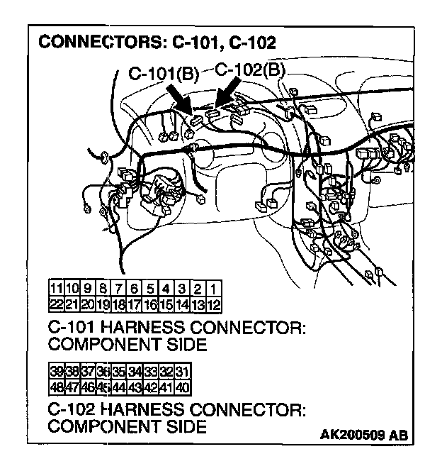 STEP 3. Check connectors C-101, C-102 at the combination meter for damage.
