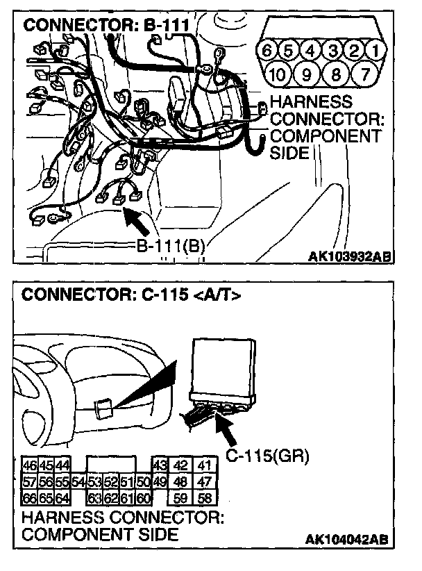 STEP 5. Check for open circuit and short circuit to ground and harness damage between park/neutral position switch connector B-111 (terminal No.9) and PCM connector C-115 (terminal No.58).