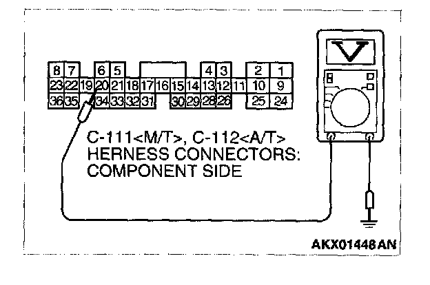3. Measure the voltage between terminal No.20 and ground.