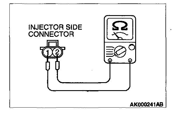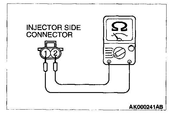 2. Measure the resistance between each injector side connector terminals No.1 and No.2.