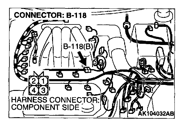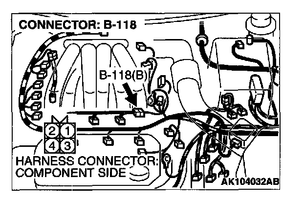 STEP 11. Check connector B-118 at injector intermediate connector for damage.