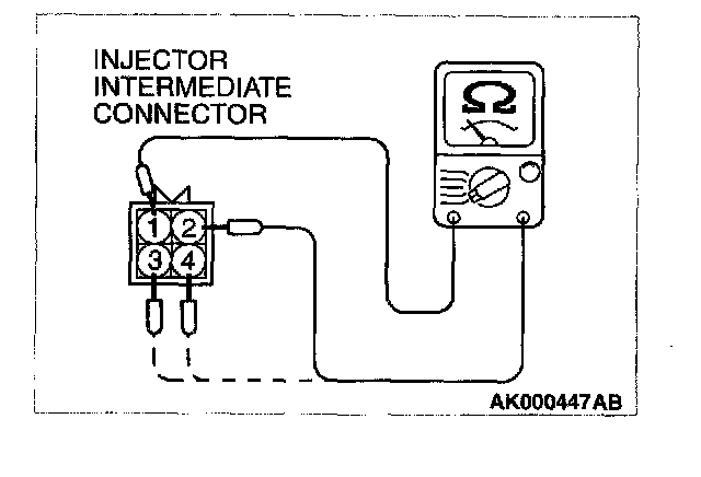 b. Measure the resistance between terminal No.1 and No. 3 when measuring No.3 cylinder injector.