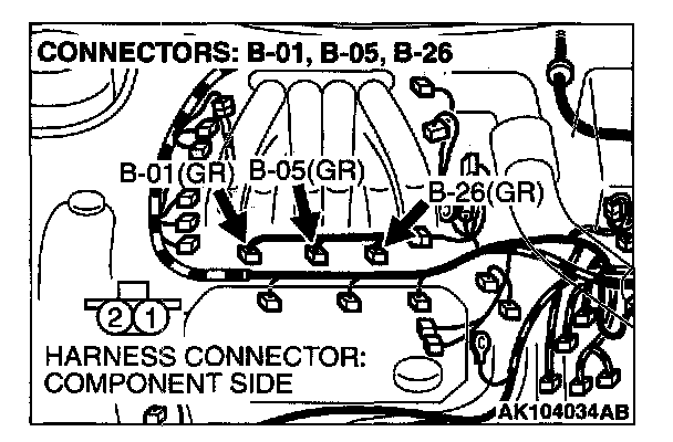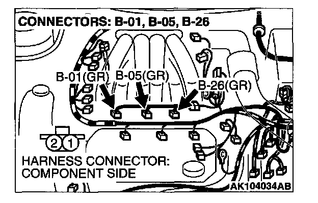 STEP 10. Check connectors B-01 or B-05 or B-26 at right bank injector for damage.