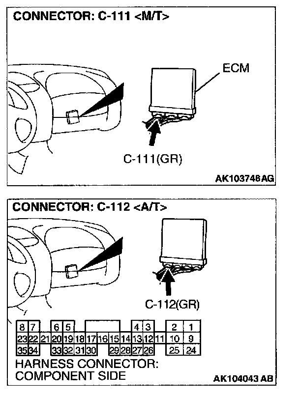 STEP 13. Check connector C-111 at ECM or connector C-112 for damage.