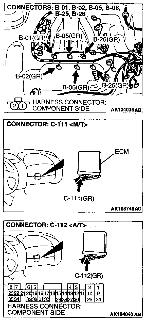 e. Check the harness wire between injector connector B-26 (terminal No.2) and ECM connector C-111 (terminal No. 10) or PCM connector C-112 (terminal No.10)