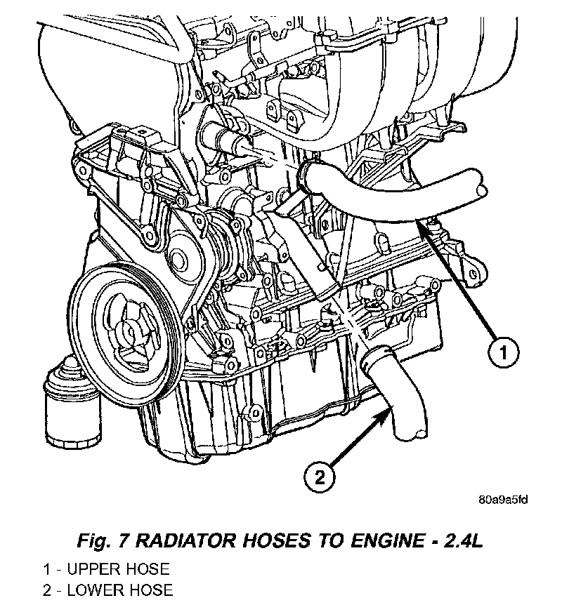 2. Remove radiator upper hose to access the hose connections at the inlet tube.