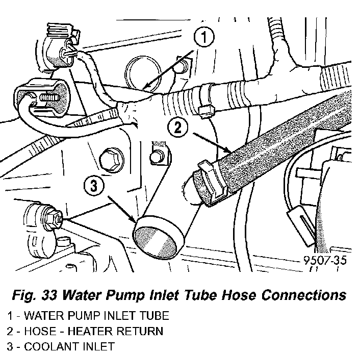 3. Remove radiator lower and heater hoses from the inlet tube.