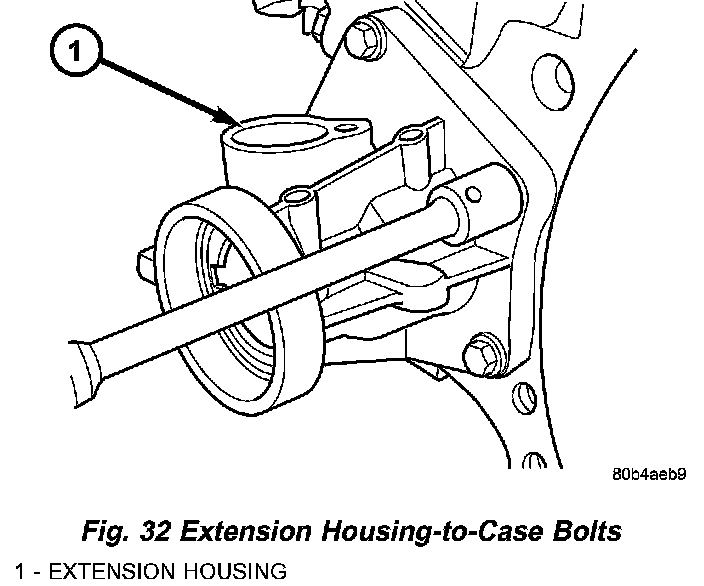 5. Remove extension housing-to-case and differential cover bolts (Fig. 32).