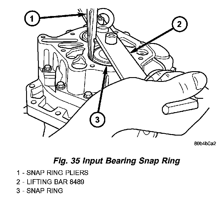 10. Lift up on bar (input shaft bearing side) and remove input shaft bearing snap ring.