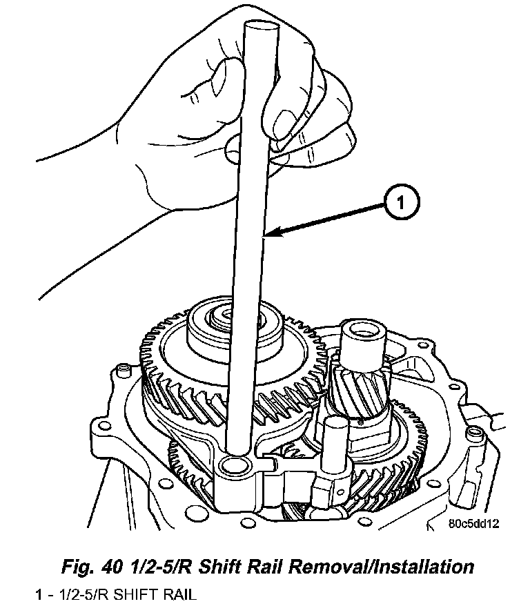 17. Remove 1-2/5-R shift rail (Fig. 40).