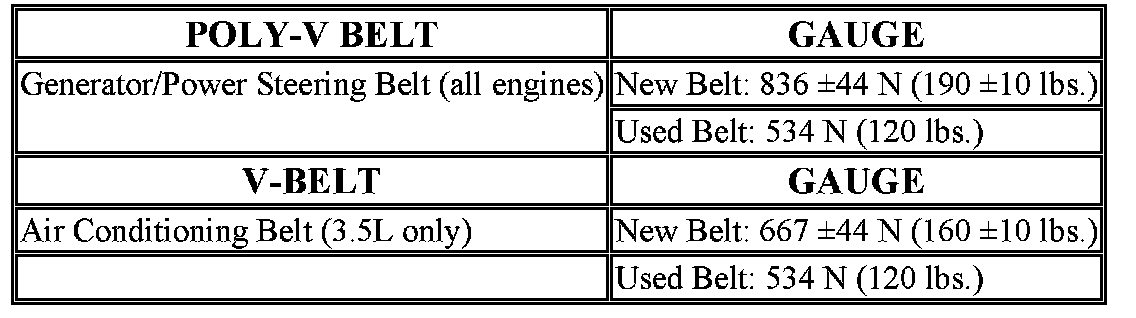 BELT TENSION CHART-2.7/3.5L ENGINES