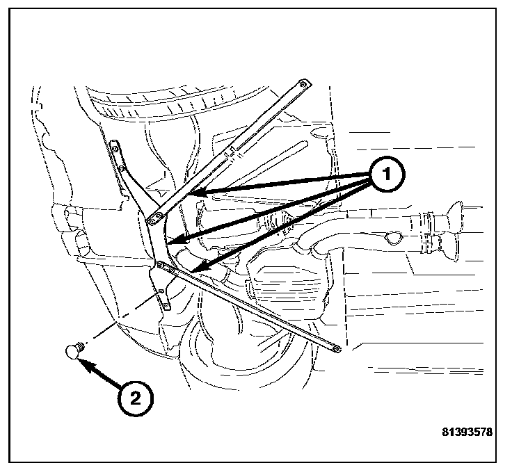 2. Remove the bolts (2) from the support brace.