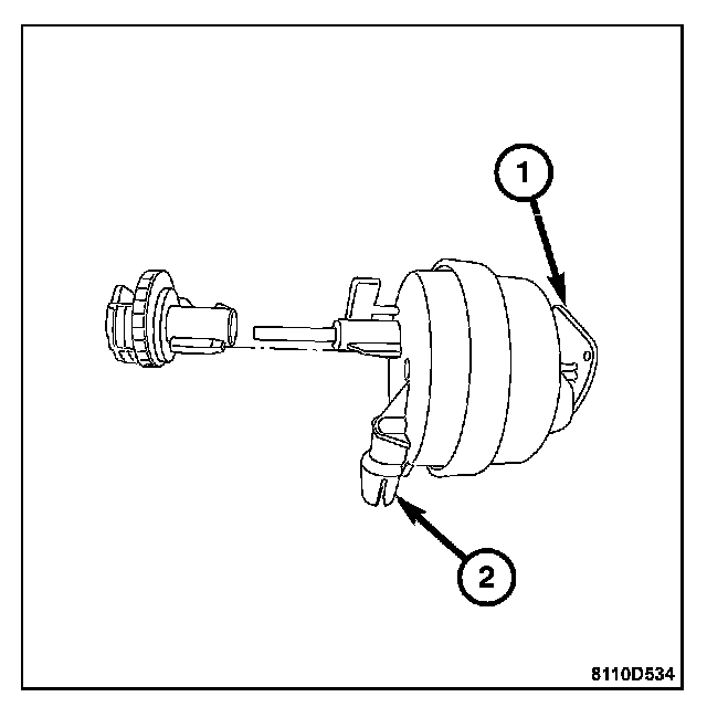 2. Remove the pneumatic supply line (2) from the fuel door lock actuator.