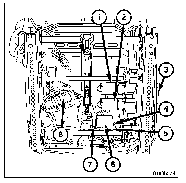 2. Install the power seat track power harness connector (8).