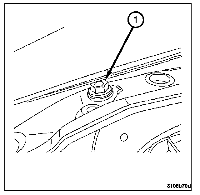 6. Install the power seat track rear inboard attachment bolt (1).