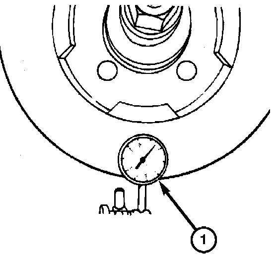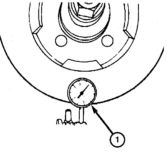 Use a dial indicator (1) to check rotor lateral runout. Maximum allowable lateral runout is 0.76 mm (0.003 inch).
