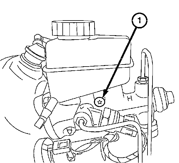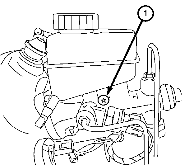 2. Install the screw (1) attaching the fluid reservoir to the master cylinder.