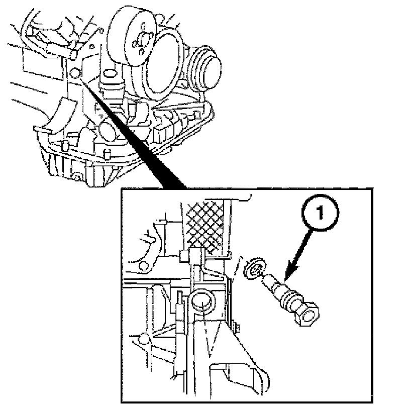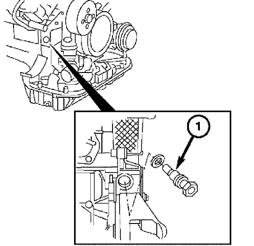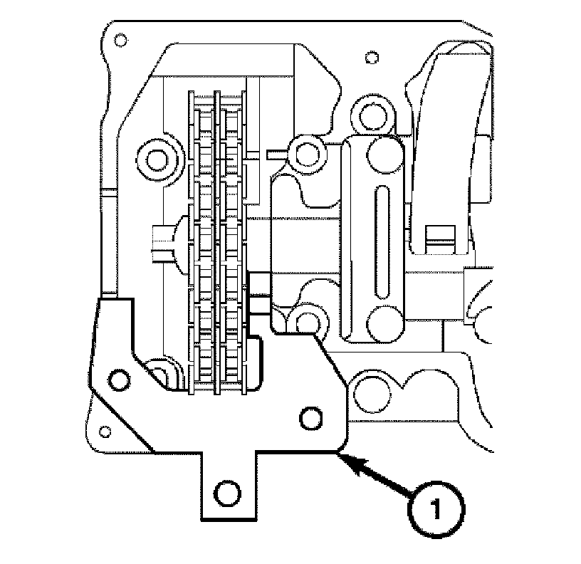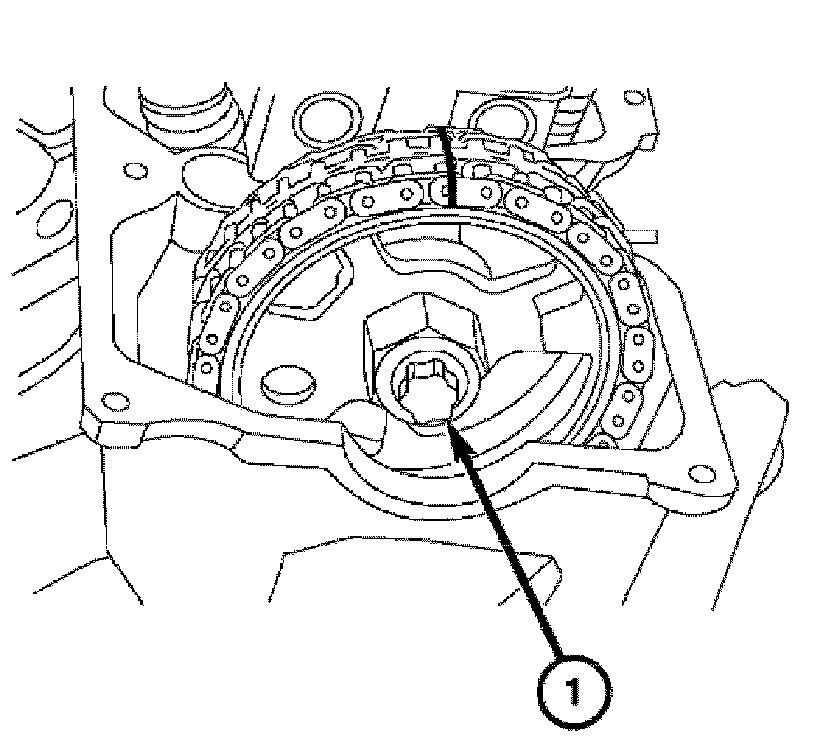 9. Install the timing chain tensioner (1). Tighten the timing chain tensioner to 80 Nm (60 ft. lbs.).
