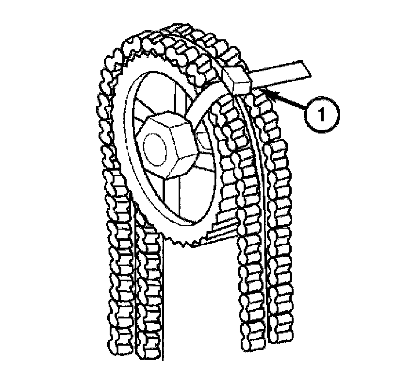 14. Use a cable tie (1) to secure the timing chain to the right hand camshaft sprocket.
