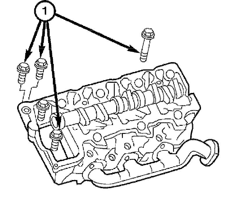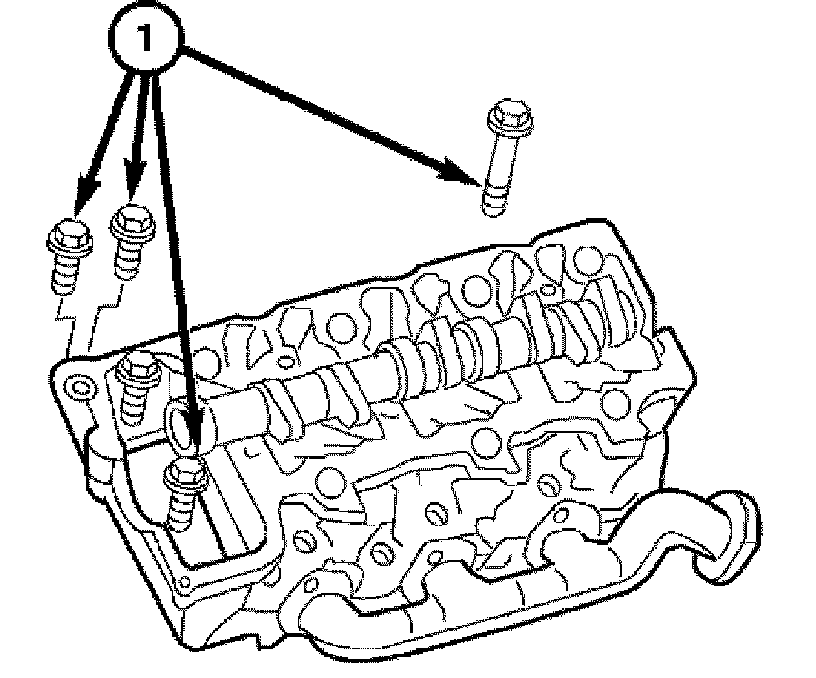 2. Install, but do not tighten the cylinder head bolts (1).