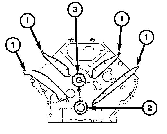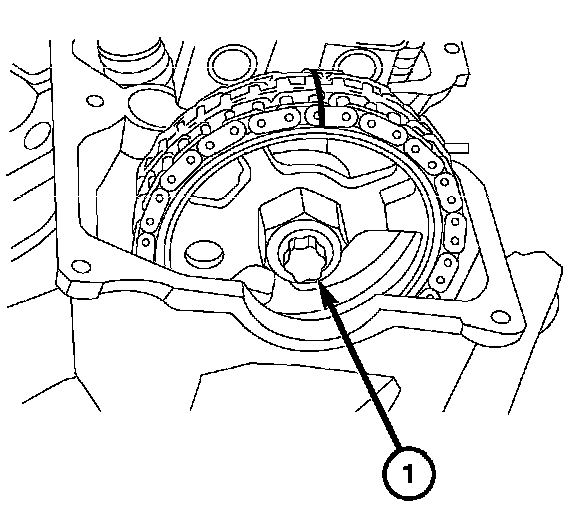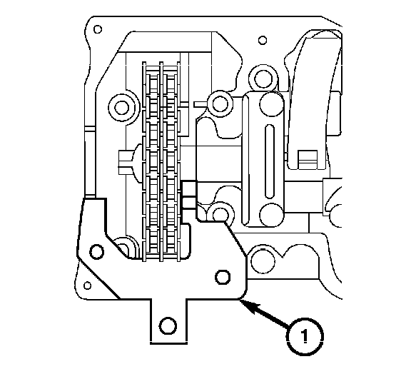 6. Install the timing chain with the sprockets and route within in the timing chain guides (1).