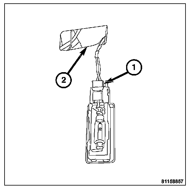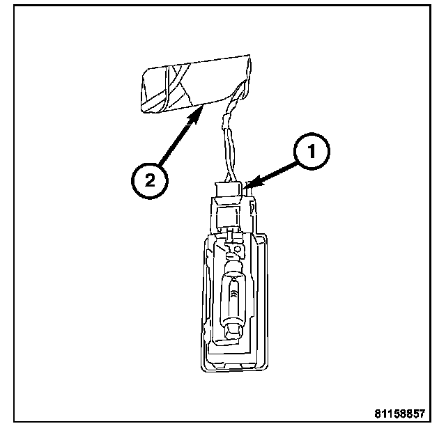 1. Connect the harness connector (1) into cargo lamp unit and insert into the cargo area interior trim panel (2).