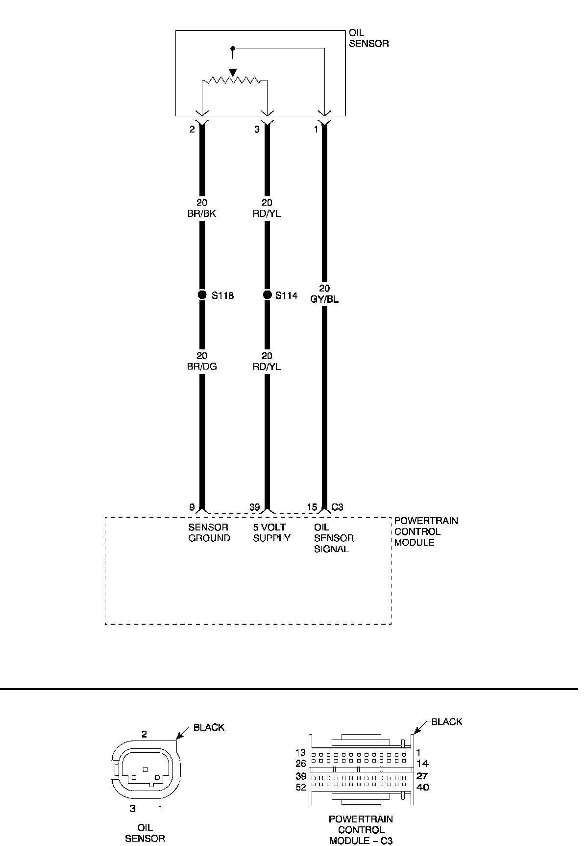 OIL SENSOR SIGNAL CIRCUIT SHORTED VOLTAGE