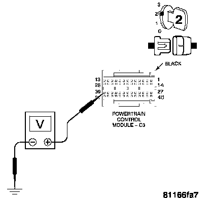 Measure the voltage of the 5-Volt Supply circuit at the PCM C3 harness connector.